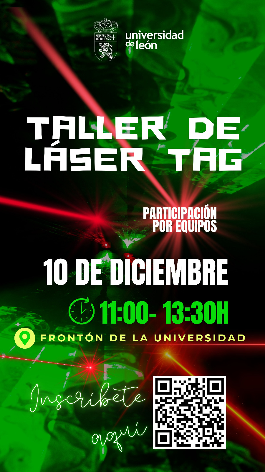 [... Leer más ]El Área de Estudiantes de la Universidad de León organiza el 10 de diciembre, de 11:00 a 13:30 horas, un Taller de Láser Tag en el Frontón de la Universidad, una actividad lúdica y participativa dirigida a equipos que deseen disfrutar de una experiencia deportiva y recreativa diferente en el campus.