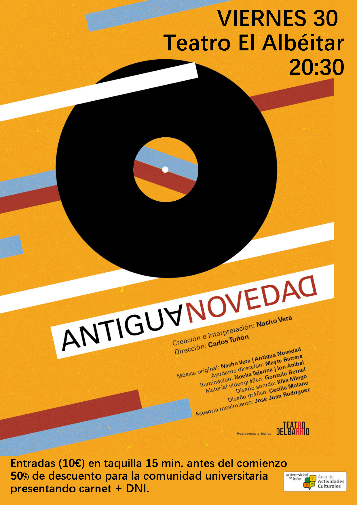 [... Leer más ]ENTRADAS (10€) EN TAQUILLA 15 MIN. ANTES DEL COMIENZO. 50% DE DESCUENTO PARA LA COMUNIDAD UNIVERSITARIA PRESENTANDO CARNET + DNI