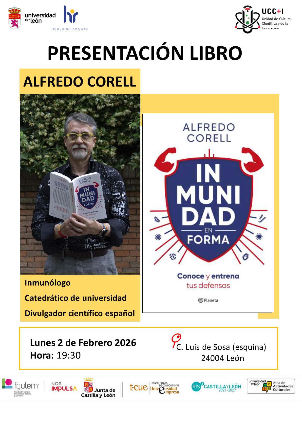 [... Leer más ]La Unidad de Cultura Científica y de la Innovación de la ULE, en sus Jornadas de Divulgación Científica, presenta el libro "Inmunidad en forma: conoce y entrena tus defensas" de Alfredo Corell