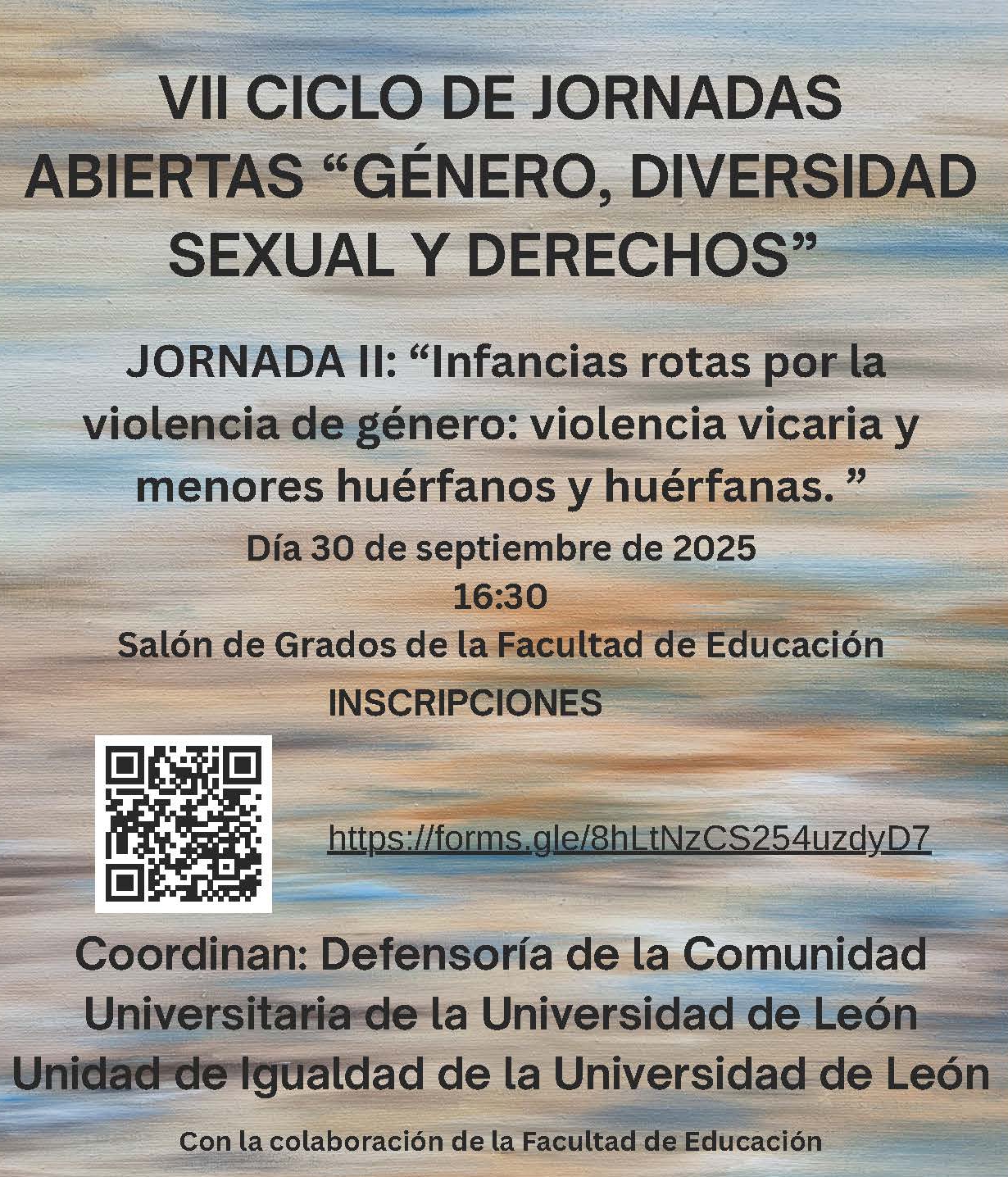 La Facultad de Educación acoge el 30 de septiembre la segunda jornada del VII Ciclo de Jornadas Abiertas sobre 'Género, Diversidad Sexual y Derechos' que reflexionará sobre una de las realidades más duras de la violencia de género, la violencia vicaria. Con el título 'Infancias rotas por la violencia