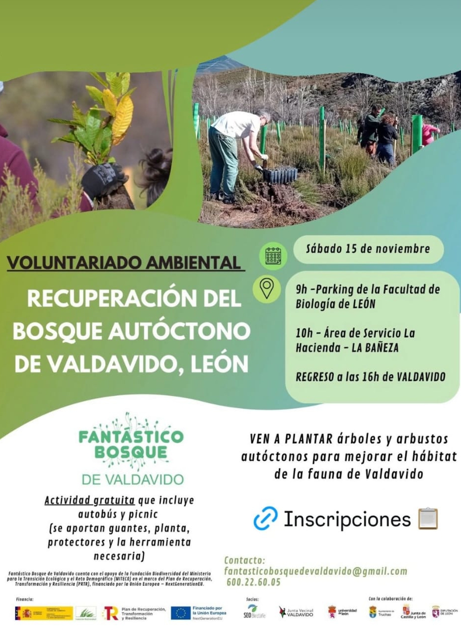 La Universidad de León colabora en una nueva jornada de voluntariado ambiental para la recuperación del bosque autóctono de Valdavido (León), que se celebrará el sábado 15 de noviembre. La actividad, organizada por el proyecto Fantástico Bosque de Valdavido, comenzará a las 9:00 horas con salida desde