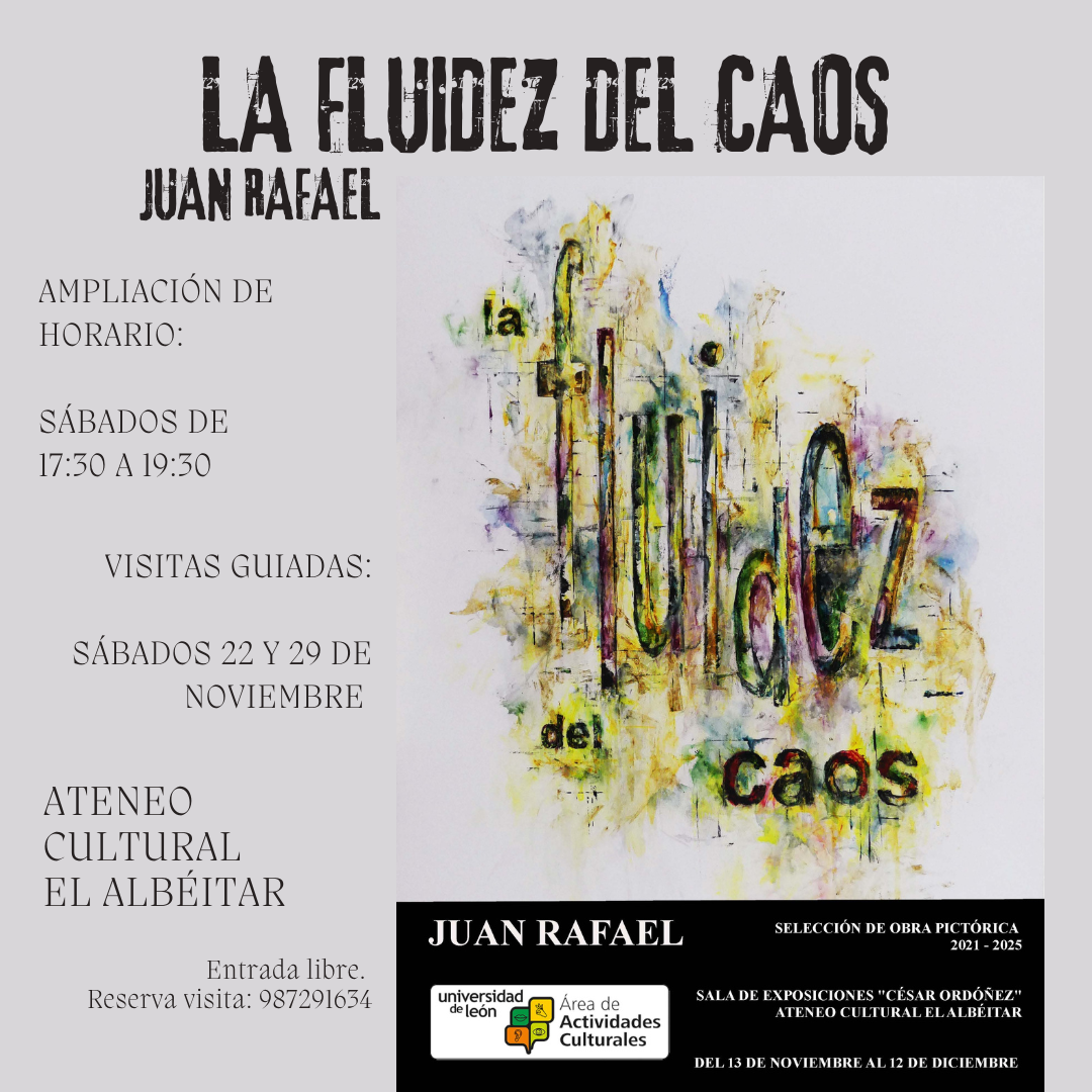 CON MOTIVO DE LA AMPLIACIÓN DEL NUEVO HORARIO DE LOS SÁBADOS, SE HARÁN DOS VISITAS GUIADAS DE LA EXPOSICIÓN "LA FLUIDEZ DEL CAOS" DE JUAN RAFAEL.